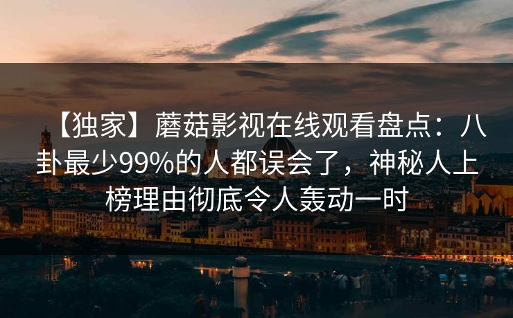 【独家】蘑菇影视在线观看盘点:八卦最少99%的人都误会了,神秘人上榜理由彻底令人轰动一时