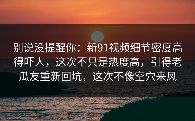 无论你是新用户,还是那些久违的老瓜友,这一次的新91视频都会让你感受到别样的震撼。本文将带你深入探讨新91视频的魅力,解析其背后的成功秘诀,让你在众多娱乐选择中,重新找回那份久违的... 无论你是新用户,还是那些久违的老瓜友,这一次的新91视频都会让你感受到别样的震撼。本文将带你深入探讨新91视频的魅力,解析其背后的成功秘诀,让你在众多娱乐选择中,重新找回那份久违的热爱。